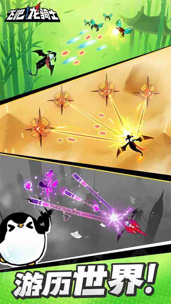 《飞吧龙骑士》是一款集合了飞行弹幕射击、、Roguelike要素和挂机养成的休闲手游,,,极具创意的吞食子弹反击玩法,,,,突破传统飞行射击的刻板限制,,,,带来了独特的爽快清屏体验。。。