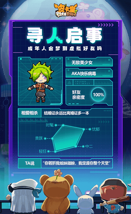 除此之外,,,,更丰富的全新玩法也会在这里与大家见面,,,,希望给大家带来不一样的游玩体验。。。。升级后的皮卡小镇,,,大家可以和闺蜜一起逛购物街,,邀请三两好友来到自己开的小店,,,还可以在小屋体验海岛或城堡生活……总之,,,,希望大家能在游戏中找回最快乐的自己,,,,享受最纯粹的社交魅力。。。