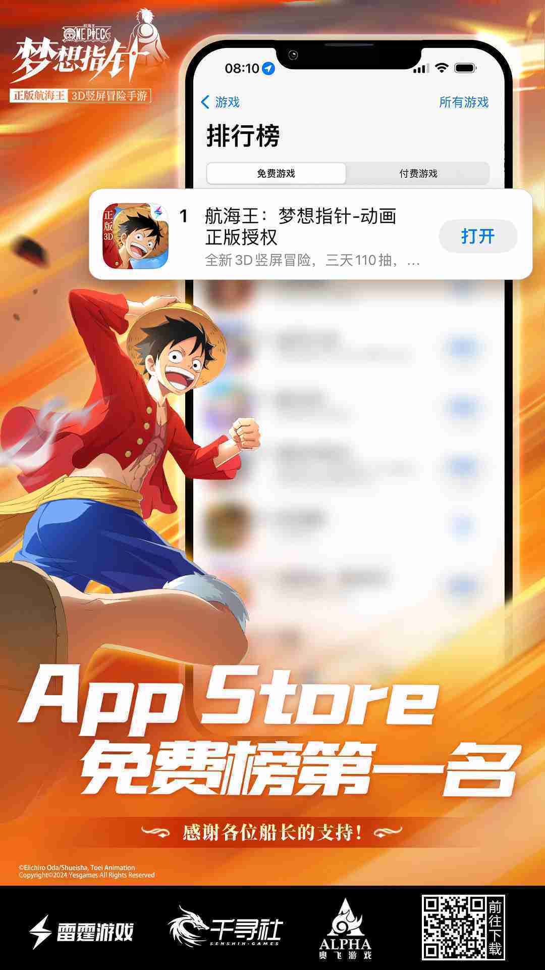 • 产品新闻 《航海王::梦想指针》登顶App Store免费榜,,,,公测福利汇总!!!
